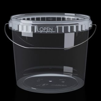 Ведро-контейнер конусной формы (складывается друг в друга) с пластиковой ручкой, герметичная крышка. Цвет прозрачный, полипропилен, в упаковке 25 штук.