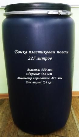 Бочка (евробарабан) 227 литров считается стандартом полимерной промышленной упаковки в мире. Евробарабан (бочка) производится методом выдувного формования из полиэтилена низкого давления, отличающегося высокими прочностными характеристиками и химической стойкостью. Бесшовный корпус бочки не имеет слабых мест. Широкая горловина обеспечивает удобство фасовки и выгрузки продукции, особенно сыпучих и пастообразных веществ. Съёмная крышка надёжно крепится хомутом из оцинкованной стали. Герметичность обеспечивает уплотнитель. Гарантией от несанкционированного доступа к продукции является пломба — шплинт. Они применимы в качестве летнего душа, в качестве емкости для хранения питьевой воды, овощей, солений, опилок, бытовых отходов, компоста, удобрений, песка, гальки, керамзита и пр. Цвет синий. t от -50 до +80, вес с крышкой 6 кг. Размер в см: H=97,8 D(горловины)=48 D(наружн)=58,1. Отдельно продаётся комплектующие (смотри раздел комплектующие). Оптом скидки (смотри прайс).